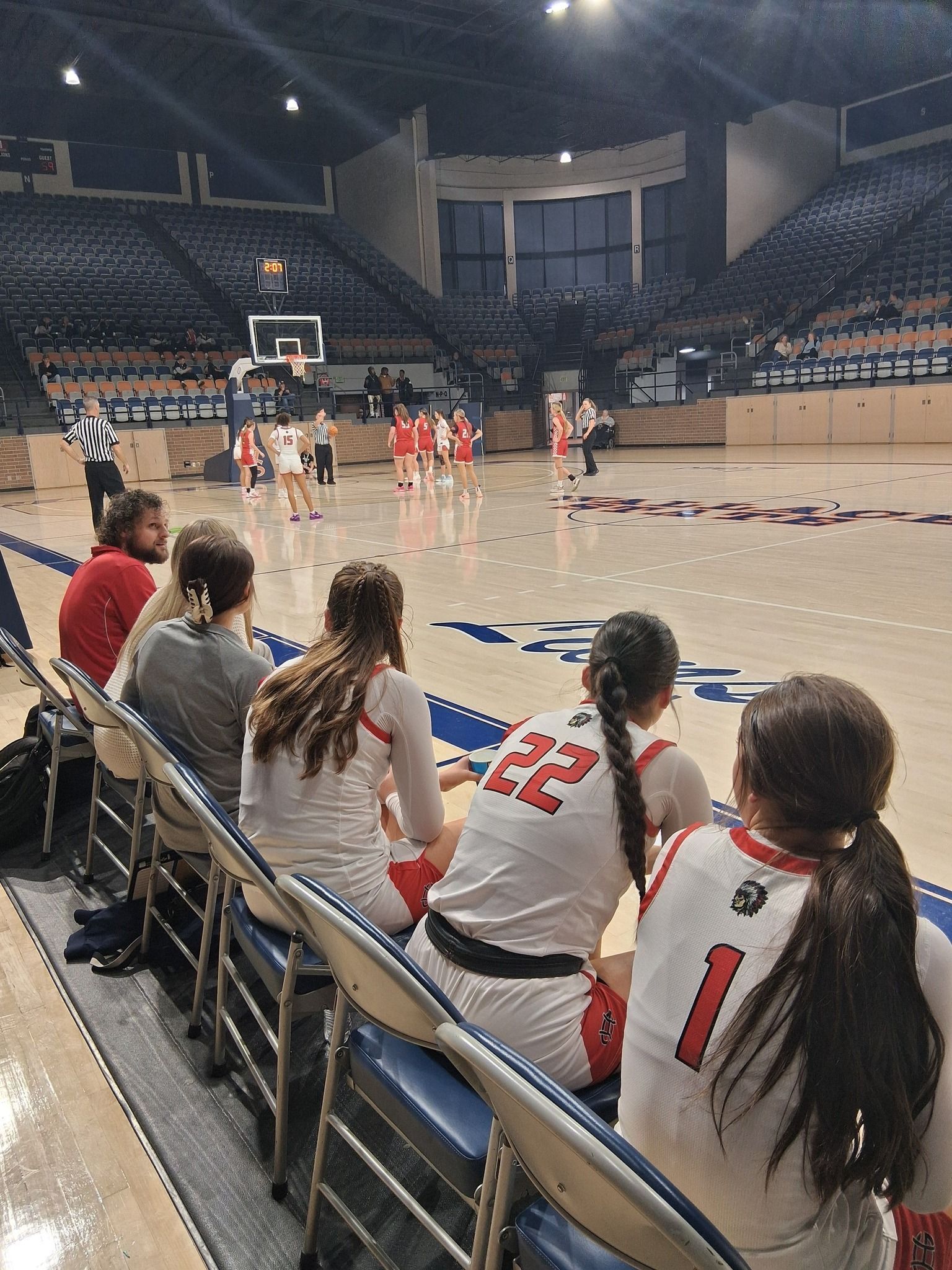 Photo of the Good Hope Lady Raiders' bench in the 2nd half of their New Year's Classic game January 2 vs. Marion Co at Wallace State CC.
