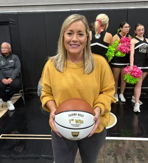 Photo of Cullman coach Tammy West with game ball after the Lady 'Cats defeated Oneonta 70 to 17 in the season opener November 6 from Bearcat Arena.
