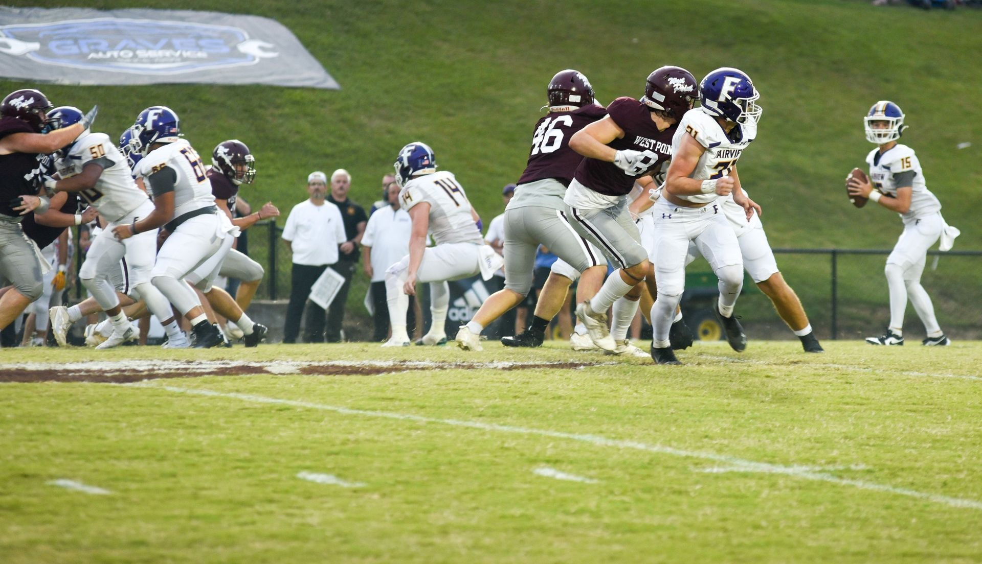 Photo of an AHSAA flag football game in 2024 between Central Phenix City (white) and Vestavia.