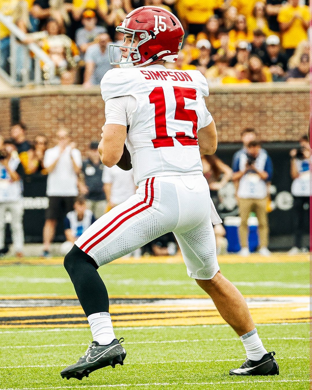 Photo of Alabama QB Ty Simpson in game vs, Missouri October 11.