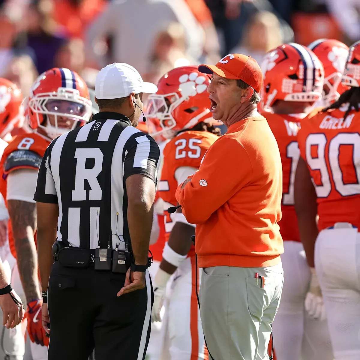 Photo of Clemson FB coach Dabo Swinney during the 2025 regular season.
