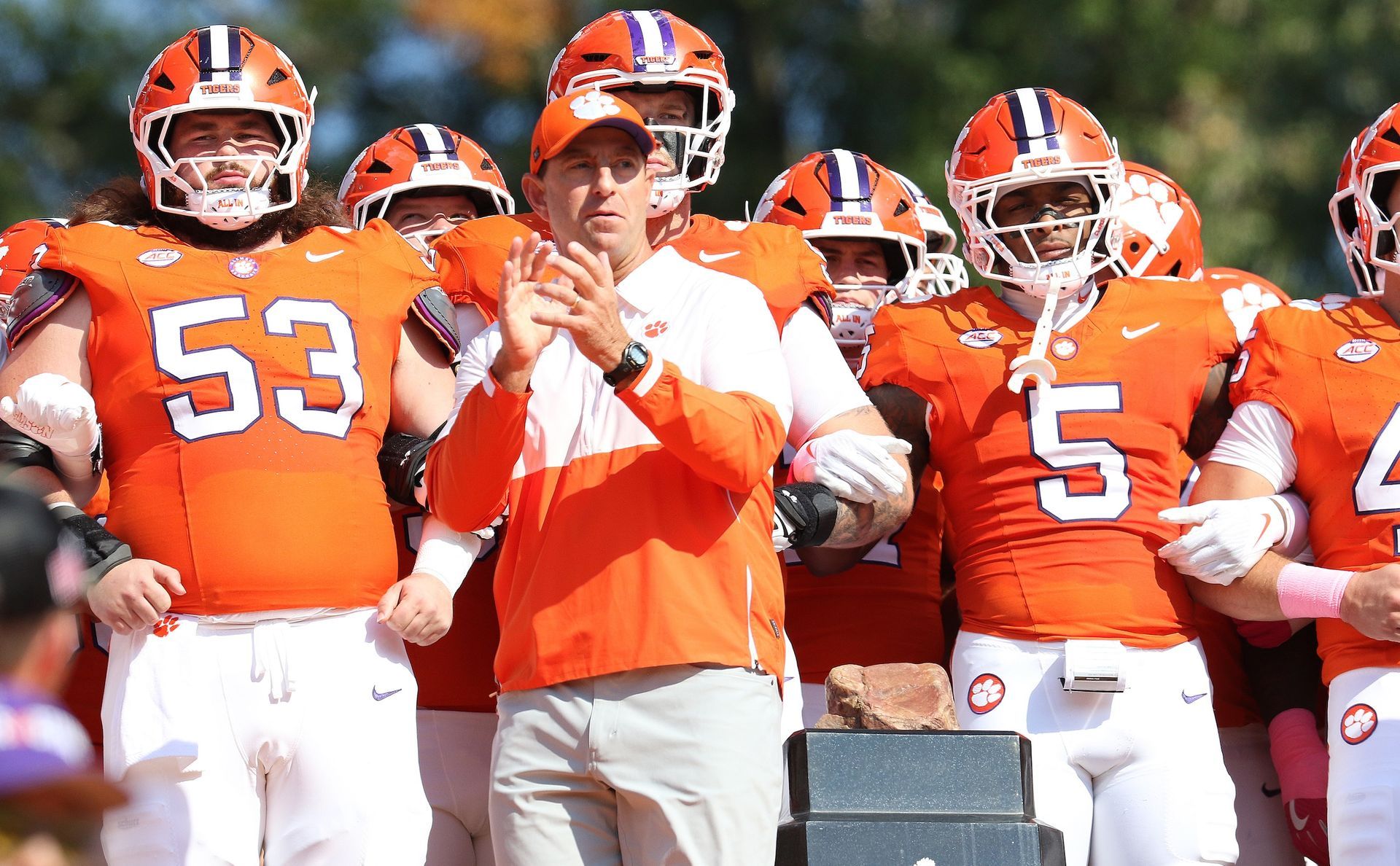 Photo of Dabo Swinney and the Clemson Tigers prior to their ACC game November 1st against the Duke Blue Devils.