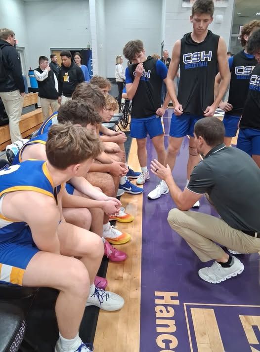 Photo of Drew Adams and the Cold Springs Eagles in a huddle during their game with Dora Monday from the Hanceville Thanksgiving Tournament.