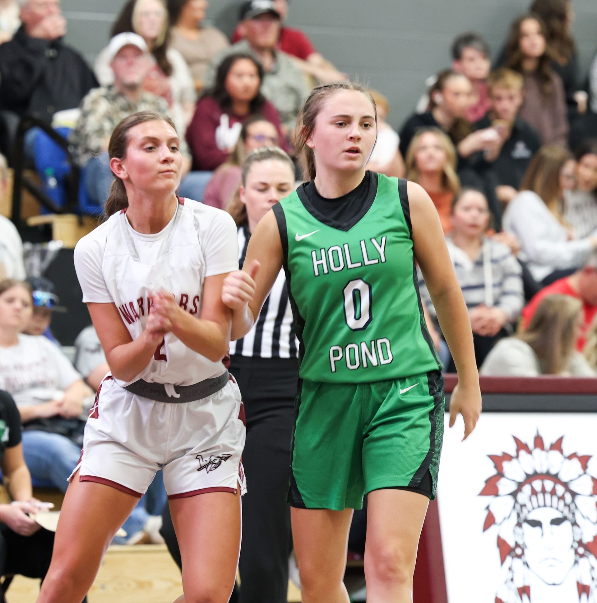 Photo of West Point's Caitlee Simmons & Holly Pond's Madison Butts in a game at Jim Boyd Gymnasium November 14.