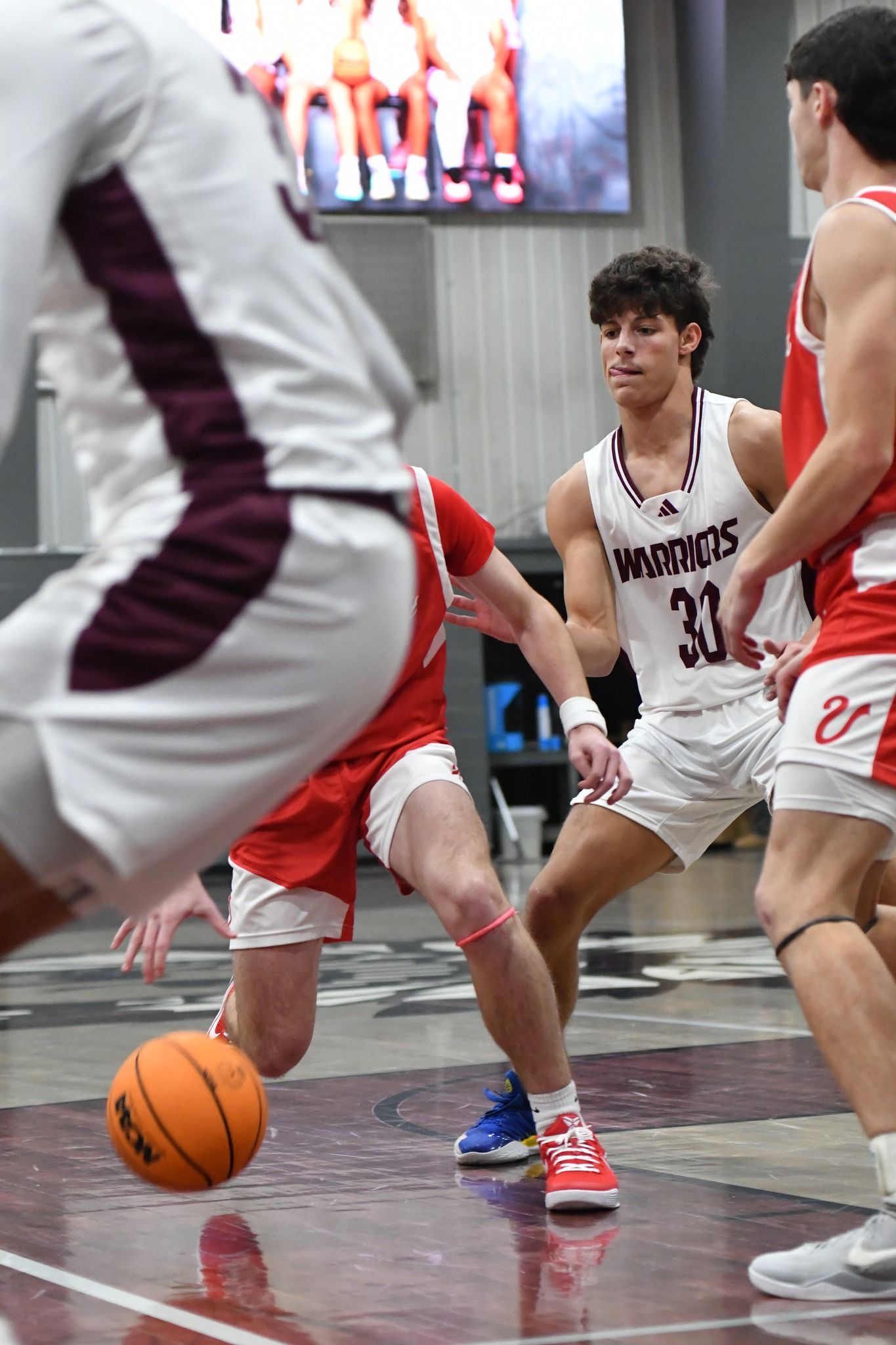 Photo of West Point SG Nolan Franklin in a game at Jim Boyd Gymnasium in early December. Franklin scored 13 in the Warriors' 82 to 56 victory over Danville Saturday afternoon.