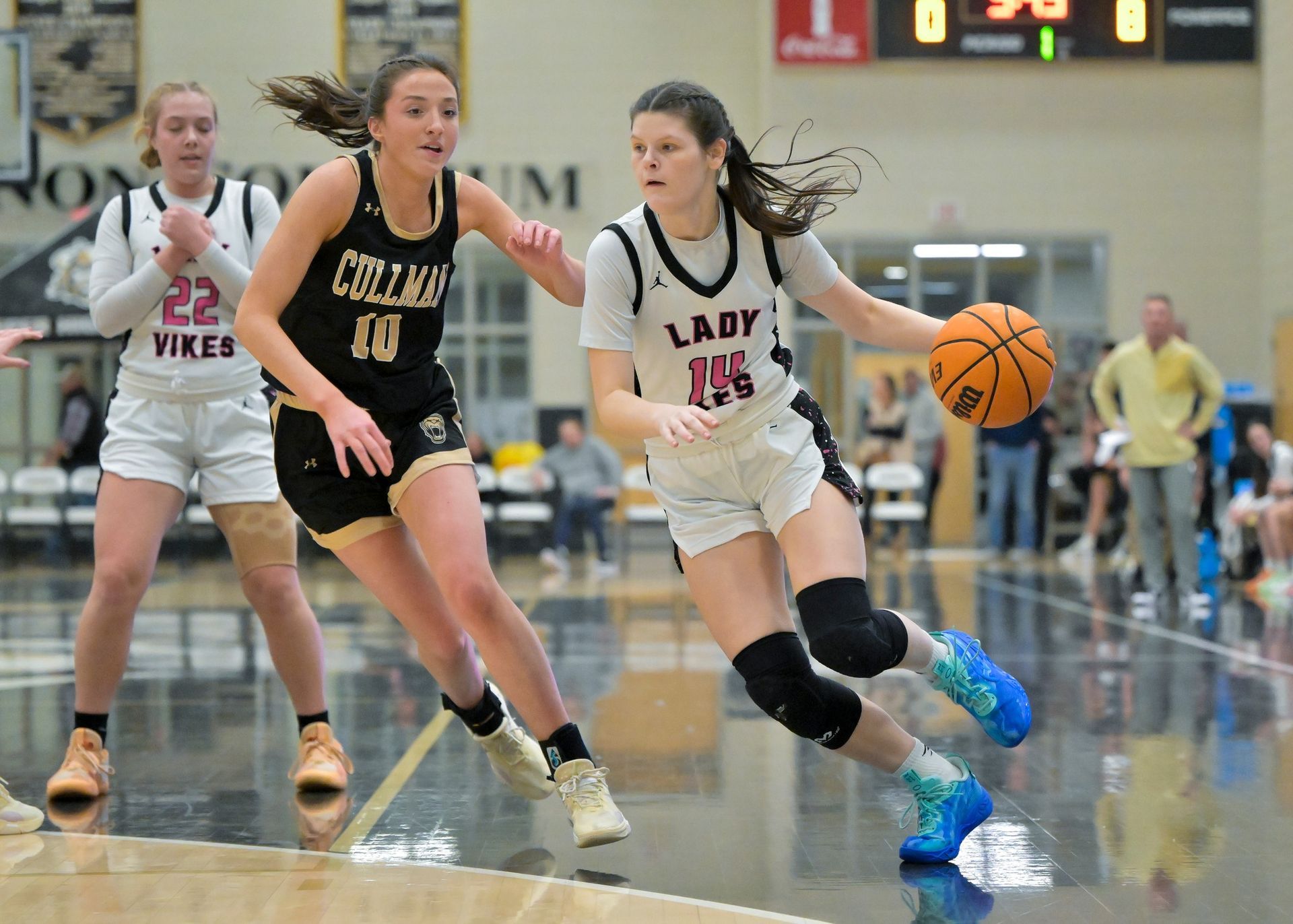 Photo of Cullman's Molly Dorough against Jasper forward Marianna Rigsby January 13 in Jasper.