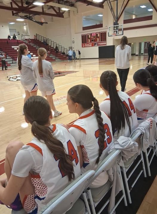 Photo of the Vinemont Lady Eagles bench Tuesday morning from the Encore Classic at Hartselle HS.